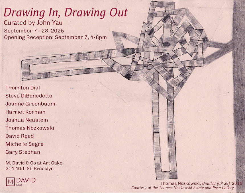 M. David & Co is pleased to present Drawing In, Drawing Out, a group exhibition of works by Thornton Dial, Steve DiBenedetto, Joanne Greenbaum, Harriet Korman, Joshua Neustein , Thomas Nozkowski, Michelle Segre, and Gary Stephan.