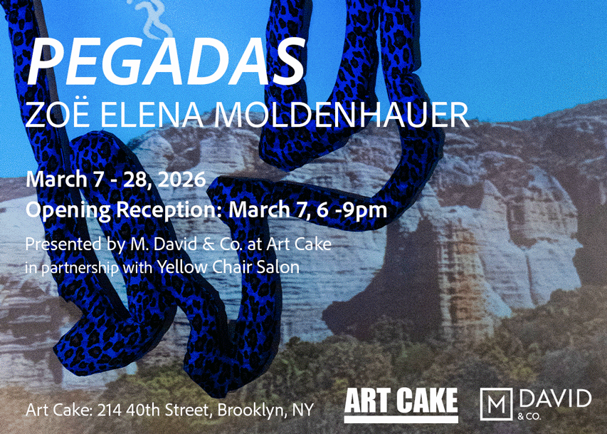 We are pleased to present pegadas, a solo exhibition of recent works by Zoë Elena Moldenhauer at Art Cake in conjunction with her participation in the Yellow Chair Independent Study Program (ISP).